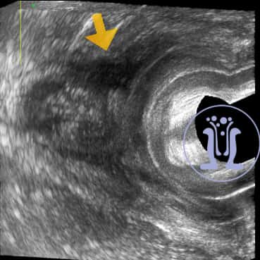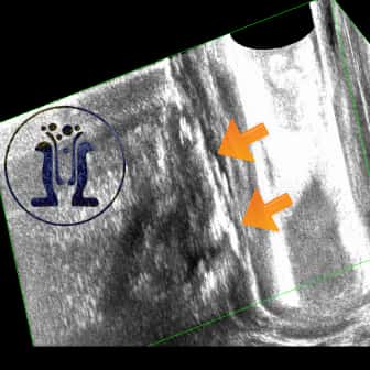 Γυναίκα ασθενής 31 ετών προσέρχεται με φλεγμονή στο δεξί μεγάλο χείλος του αιδοίου από μηνός. Στο ιστορικό της αναφέρει εγχείρηση για βαρθολίνειο δεξιά προ διετίας. Κλινικά ανευρίκεται δερματικό στόμιο δεξιά κοντά στο κόλπο και η εξετάστική μήλη διεισδύει σε ενα μεγάλο βάθος. Υπερηχοτομογραφικά ανευρίσκεται επικοινωνία με το έντερο που συμπεριλαμβάνει όλο το μήκος του σφιγκτήρα στην 12η ώρα.