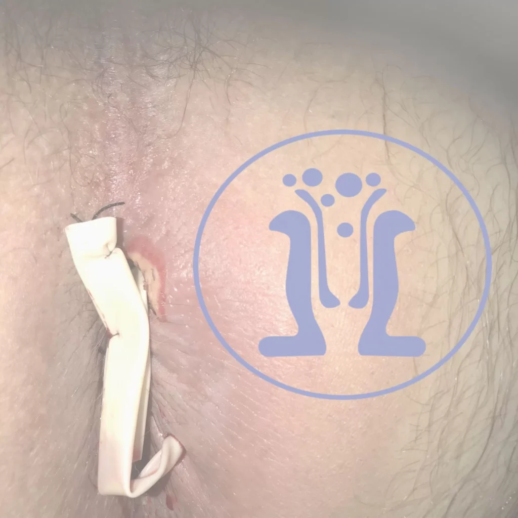 38 χρονών εύσωμος ασθενής με πόνο και πυρετό από μία εβδομάδα. Επαιρνε αντιβίωση αλλά δεν καταφερε ούτε να κουκουλώσει την φλεγμονή. Το ενδοπρωκτικό υπερηχογράφημα έδειξε μεγάλο απόστημα στην 12η ώρα. Ο ασθενής υποχρεωτικά πήρε νάρκωση. Παροχετεύθηκε μεγάλο απόστημα και τοποθετήθηκε σωλήμας παροχέτευσης. Αυτός αντικαταστάθηκε με ράμμα seton μετά μία εβδομάδα.