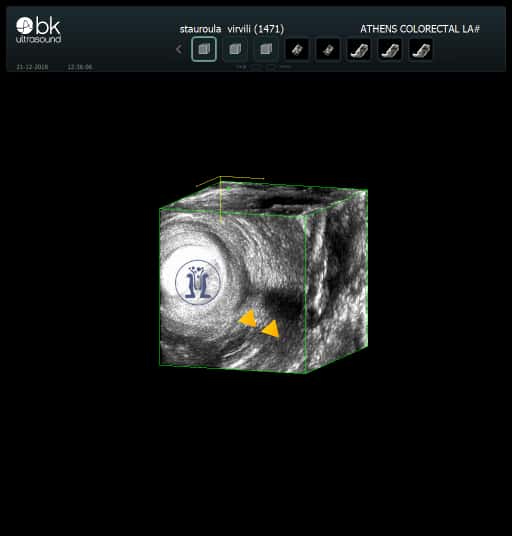 Η ασθενής προσήλθε για διερεύνηση πιθανού συριγγίου μετά από παροχέτευση περιεδρικού αποστήματος. Στην κλινική εξέταση ανακαλύψαμε και δεύτερο στόμιο που είχε διαφύγει από την προσοχή των άλλων. Στο λεπτομερειακό ιστορικό που πήραμε από την ασθενή διαπιστώθηκε ότι είχαν σημειωθεί τραυματισμοί του έξω σφιγκτήρα του πρωκτού μετά από δύσκολο τοκετό και συρραφή των σφιγκτήρων. Οι τραυματισμοί των σφιγκτήρων αποτυπωθήκαν με ευκρίνεια στο ενδοπρωκτικό υπερηχογράφημα. Στην χαρτογράφηση διαπιστώθηκε ότι το συρίγγιο, αν και ήταν μικρό, περιελάμβανε πάνω από το ήμισυ του τραυματισμένου έξω σφιγκτήρα. Για τον παραπάνω λόγο, η θεραπεία του απαιτεί ιδιαίτερη ΠΡΟΣΟΧΗ.