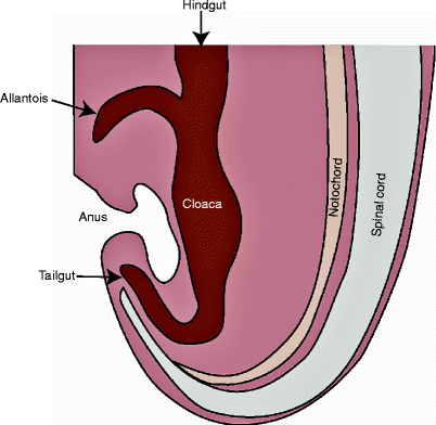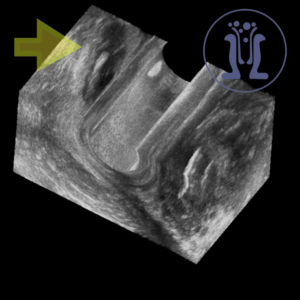 Το ενδοπρωκτικό υπερηχογράφημα δείχνει μία κύστη στο οπίσθιο άνω τεταρτημόριο του πρωκτικού σωλήνα με χαρακτήρες οπισθοορθικής κύστης. Η οπίσθοορθική κύστη είναι μία κύστη που αναπτύσσεται πίσω από το ορθού και πιθανότατα προκαλείται από παραμονή και περαιτέρω ανάπτυξη εμβρυικού υπολείμματος.